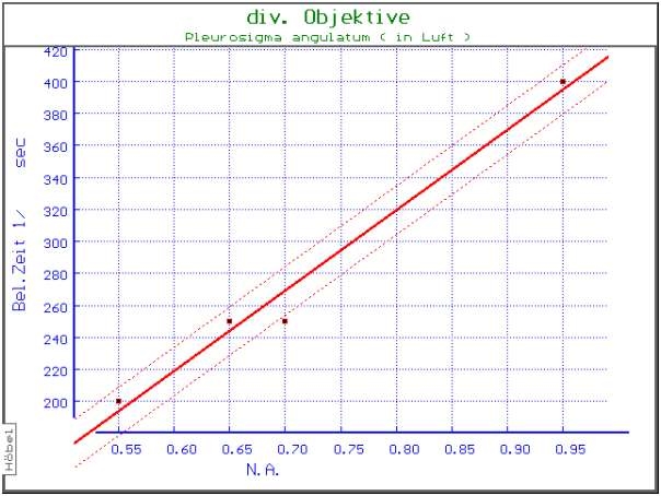 Bei meinem Normobjekt Pleurosigma reichen bei 400 facher Vergrösserung und Iso 100 eine Pulszeit von 1 msec bereits für eine Belichtung aus.