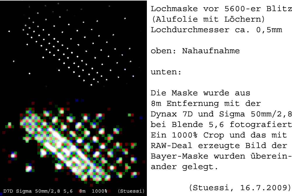ja, ohne AA-Filter, man sieht sozusagen die unverfälschte Wirkung der versetzten Farbsensoren. Mit Filter ist die Auflösung zwangsläufig eigentlich geringer, auch wenn das Bild "schöner" aussieht. Man könnte natürlich das Bild noch softwaremäßig aus den Rohdaten berichtigen. Aber ich wollte bewusst nur die Wirkung der reinen Ditgitalisierung mit dem Bayer-Filter untersuchen. Wenn man die verschiedenen technischen Sensorvarianten bzw. Kameraphilosophien berücksichtigt, die es mittlerweile gibt, wird es allerdings kompliziert. Aber das kann ja jeder selbst testen.  ;)