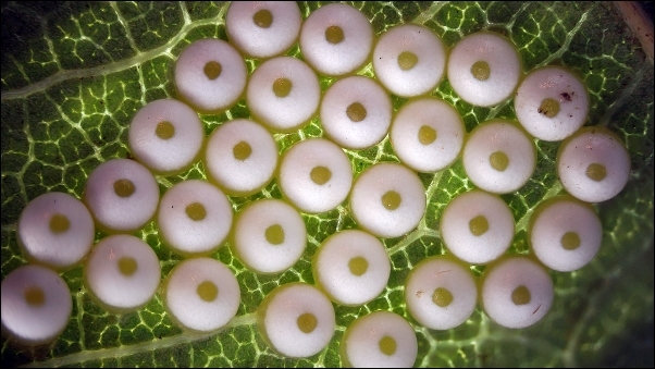 Natürlich ist der Vogel ein Falter und die Monde dessen Eier – verwirrend, wie Dein Rätsel ...