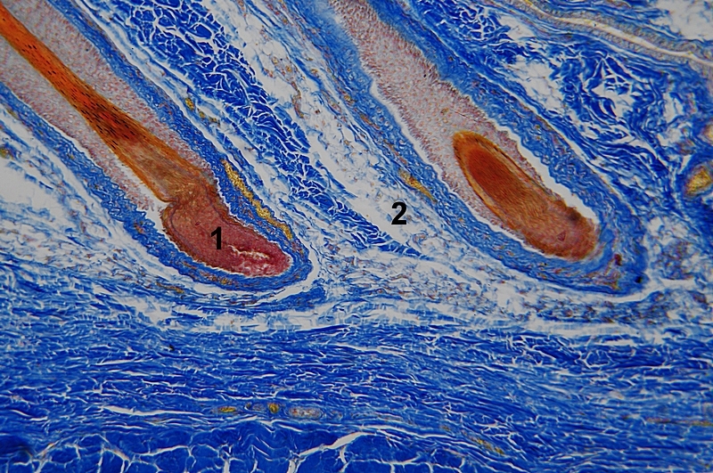 1 = Epidermis, 2 = Dermis, 3 = Haartrichter