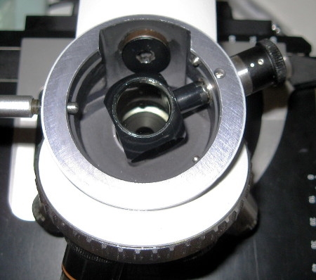 da passt auch sehr schön eine ausgeschnittene Polfolie als einschwenkbarer Analysator rein oder ein Emissionsfilter für Durchlichtfluoreszenz.