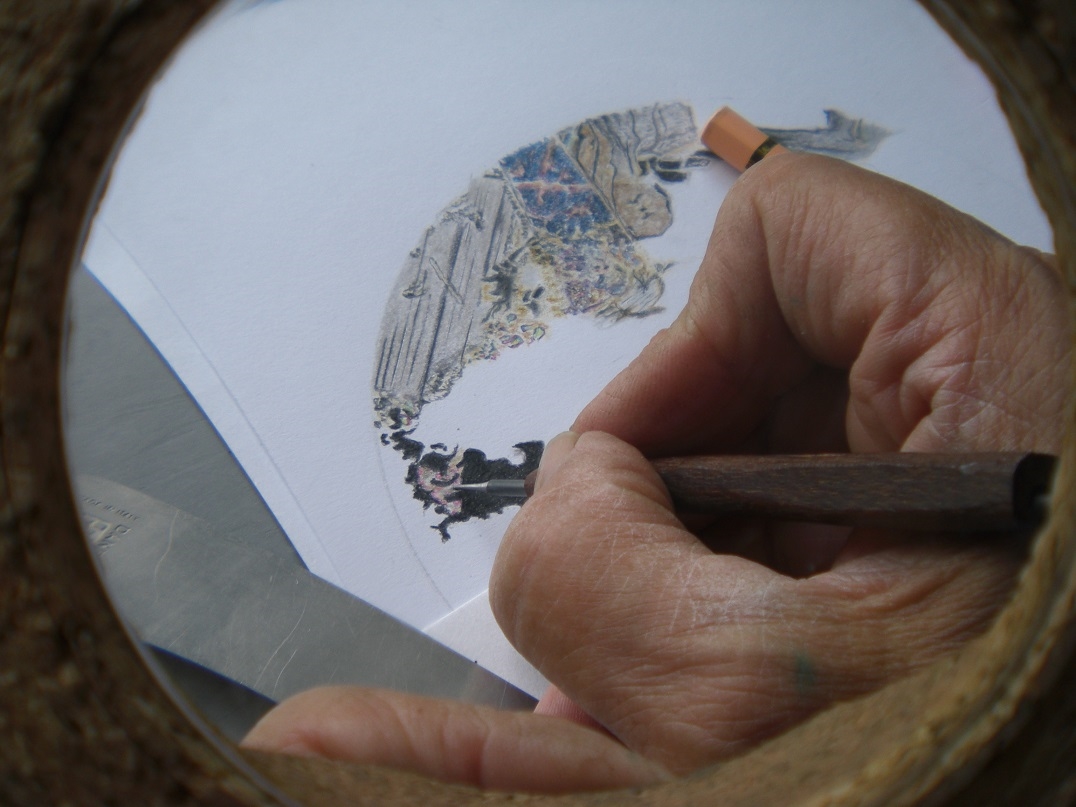 Ich habe mir aus Kork eine Fassung für eine recht große Linse gemacht, welche mir ermöglich feinere Linien zeichnen zu können als ich es sonst schaffe.