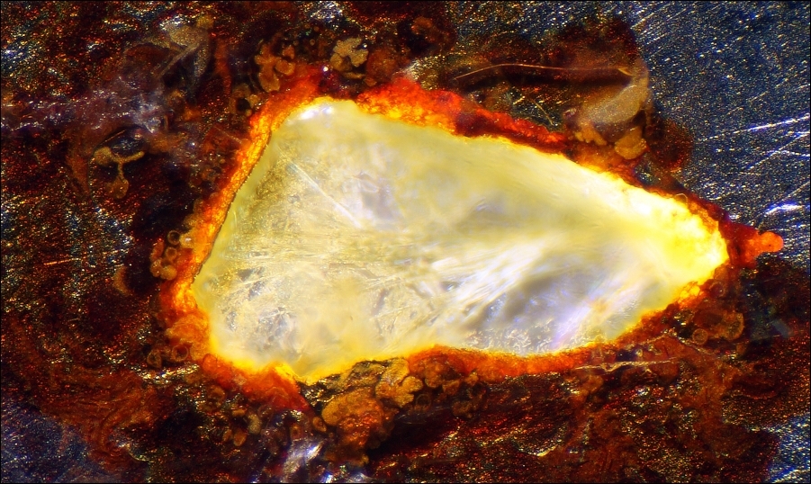 Ich tippe auf ein Glaskörnchen oder ein Kristallkörnchen.