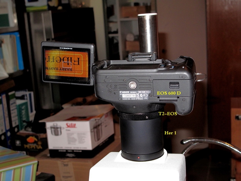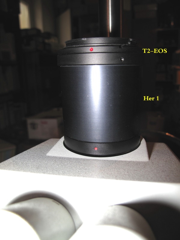 Ist Parfokal. Geht also. Kleiner Nachteil: gegenüber meiner Lösung mit dem Her 1 ist der Bildausschnitt nur etwa 1/4 so groß, ganz abgesehen von der enormen Bauhöhe 240 mm zu 60 mm beim Her 1.