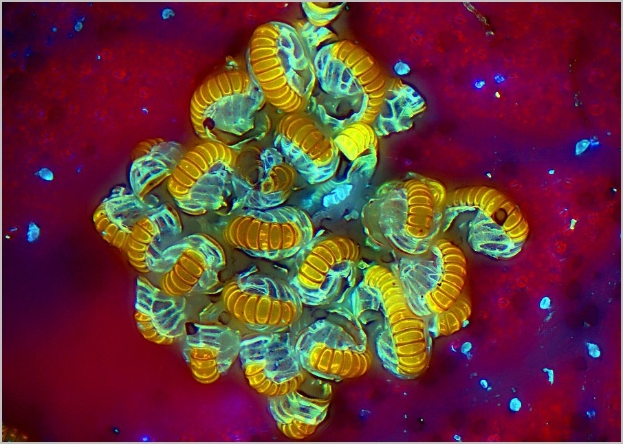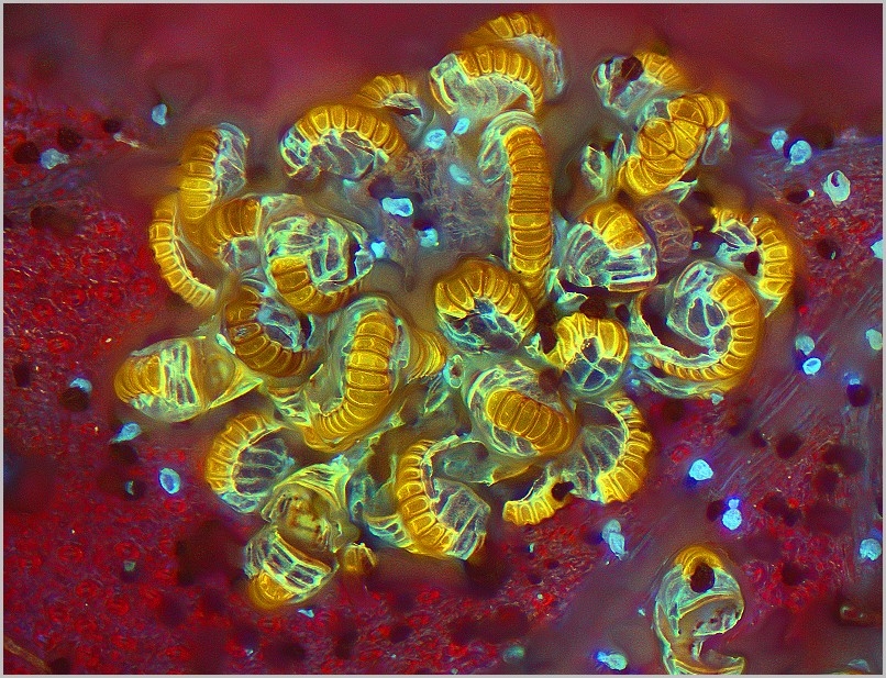 Nur als kleiner Eindruck wie sich Sporangien ohne Fluoreszenz zeigen.