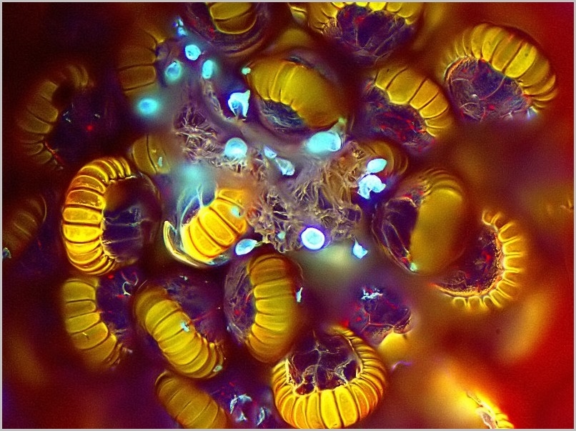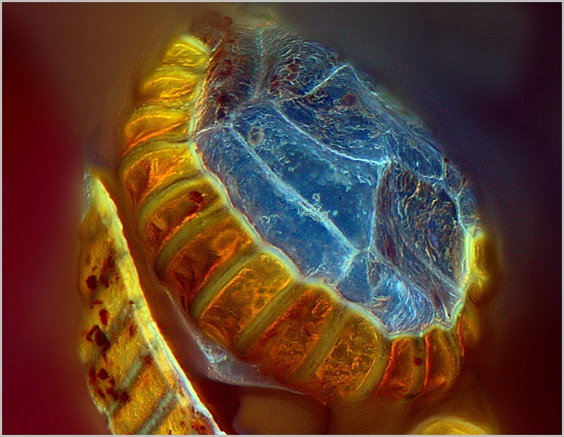 ob ich die Objektive wirklich schädige kann ich nicht sagen. Es ist kein Dauerbetrieb, sondern nur wenige Minuten. Zudem schädige ich die Sporangien schneller als mir lieb ist. Kann manchmal wenige Sekunden dauern und sie verändern sich KRÄFTIG ! Ich bin in Kontakt mit Rogelio Moreno und er gab mir noch Ratschläge und bestätigt die schnelle Schädigung der Sporangien durch UV. Daher auch die langen Bel.zeiten bei ihm mit wenig Energie.