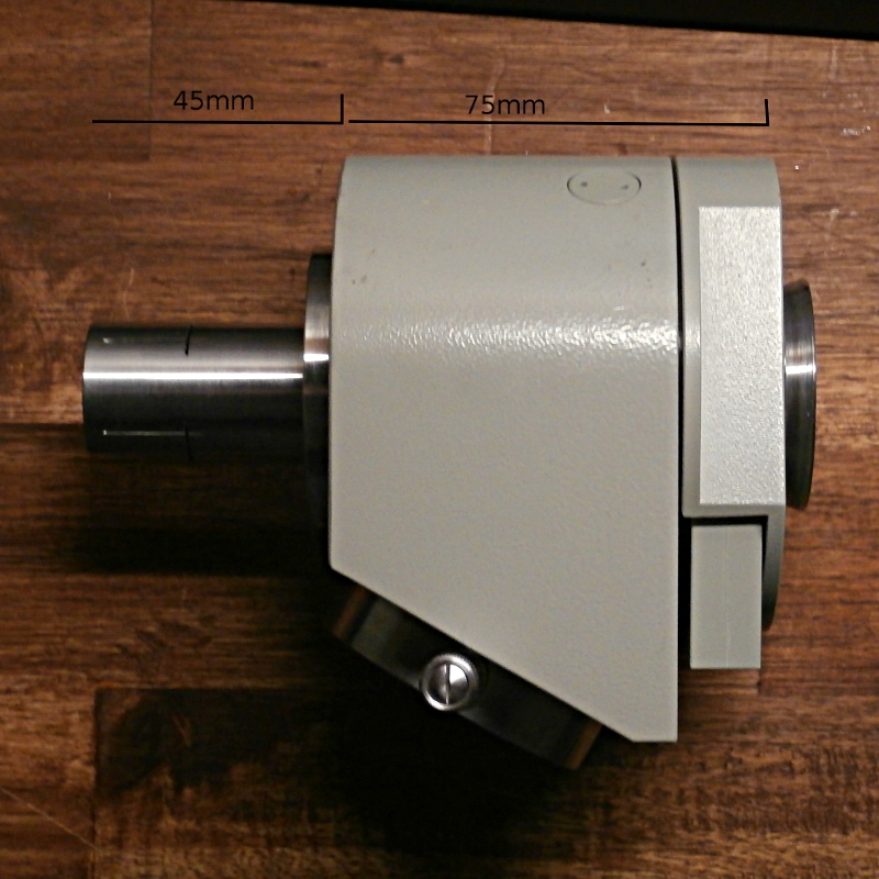 Wenn deine Angabe von 45 mm die Entfernung von der grauen Oberfläche des Trinotubus zum Auflager des Projektives ist, dann kann ich die Lage des Projektives in meinem Trinotubus ausmessen.