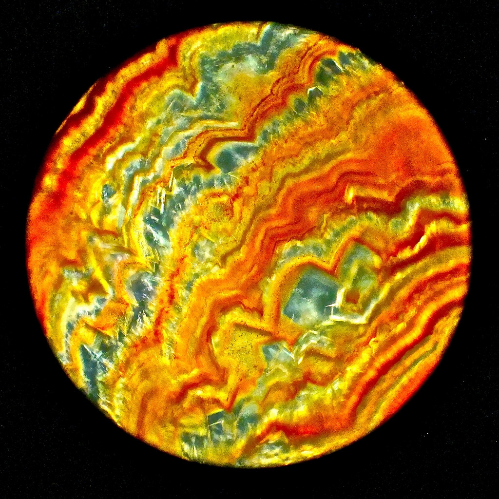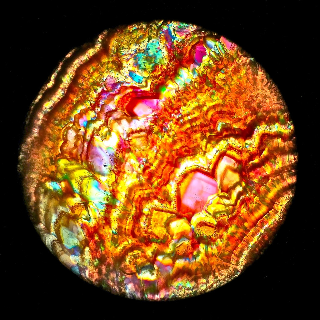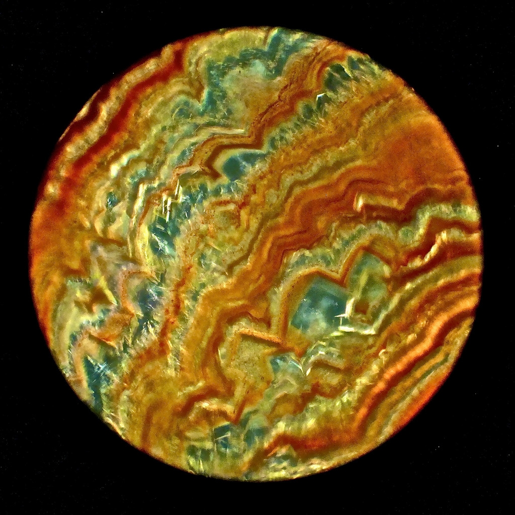 Mikrofotos Achat-Schliff d >> 30 µm mit HF, DF und POL