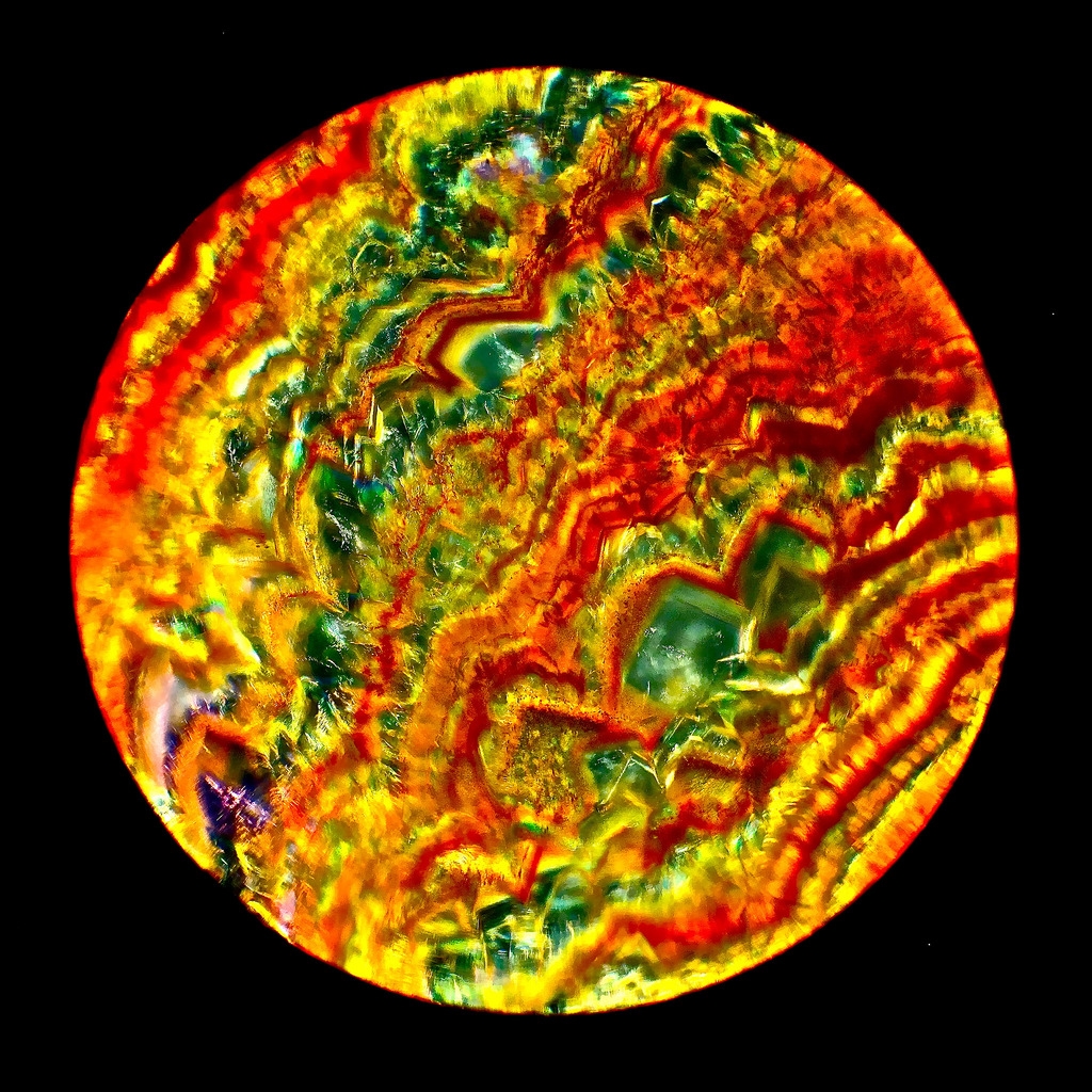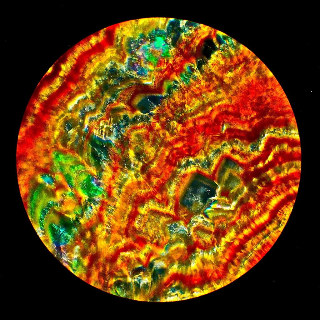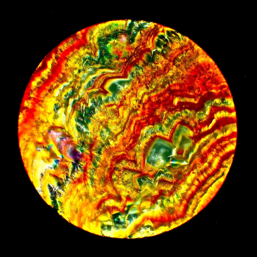 Mikrofotos Achat-Schliff d >> 30 µm mit HF, DF und POL