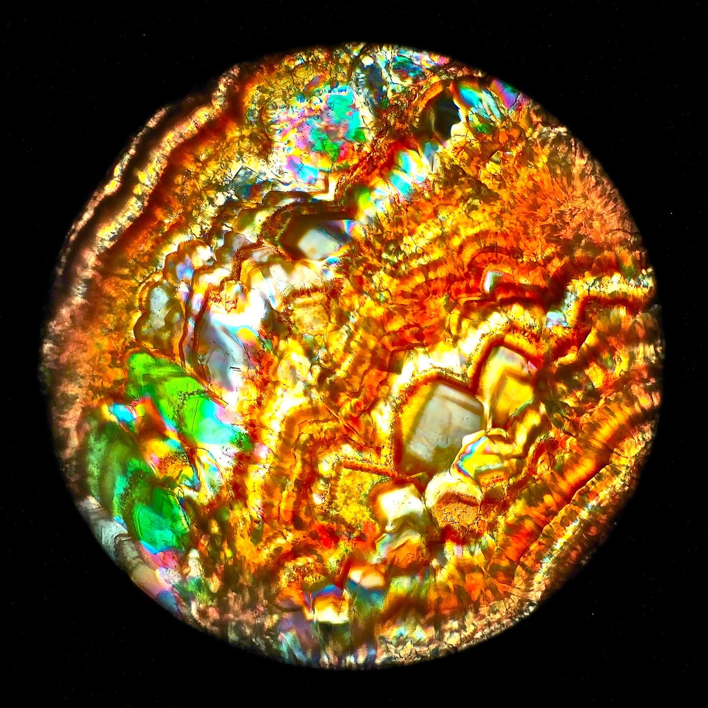 Gesteinsdünnschliffe mit Dicken >> 30 µm zeigen bei der Betrachtung mit dem Stereomikroskop im Dunkelfeld oft schöne Einblicke in die