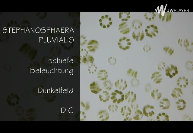 Und die ganze Schönheit dieser Alge ist erst in Bewegung sichtbar. Gerade die Dunkelfeldsequenzen waren für mich anspruchsvoll, da die Algen gerne überstrahlten. Wenn Ihr auf das Bild klickt, kommt Ihr auf meine Seite mit den Algenvideos / Stephanosphaera (14 MB / 1:40min):