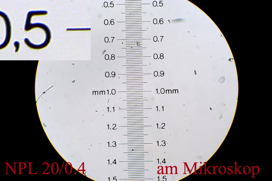 das sieht im Vergleich zum Mikroskop bei einem  20er Objektiv ja nicht sehr gut aus.