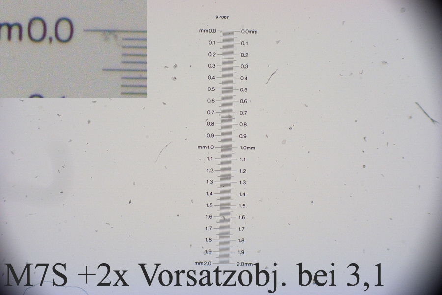 und der Blick durch das M7S mit 2x Vorsatzobjektiv bei Einstellung 3,1 -also 62-fache Vergrößerung-.