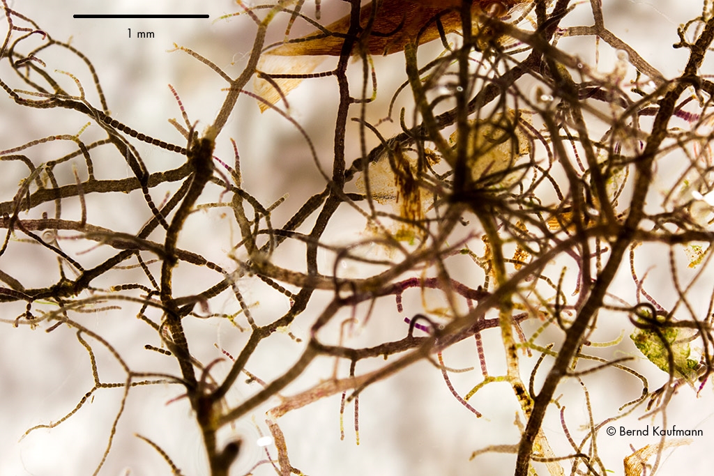 Eine passende Rotalge fand ich nicht, deshalb fiel mir nur noch eine im Süßwasser extrem seltene Braunalge ein. Darunter hatte die Gattung Ectocarpus noch die meiste Ähnlichkeit mit meinen unbekannten Objekten. Kennt jemand von Euch andere Braun- oder Rotalgen mit einer gewissen Ähnlichkeit, oder kann sogar Ectocarpus bestätigen? Oder bin ich total auf dem Holzweg?