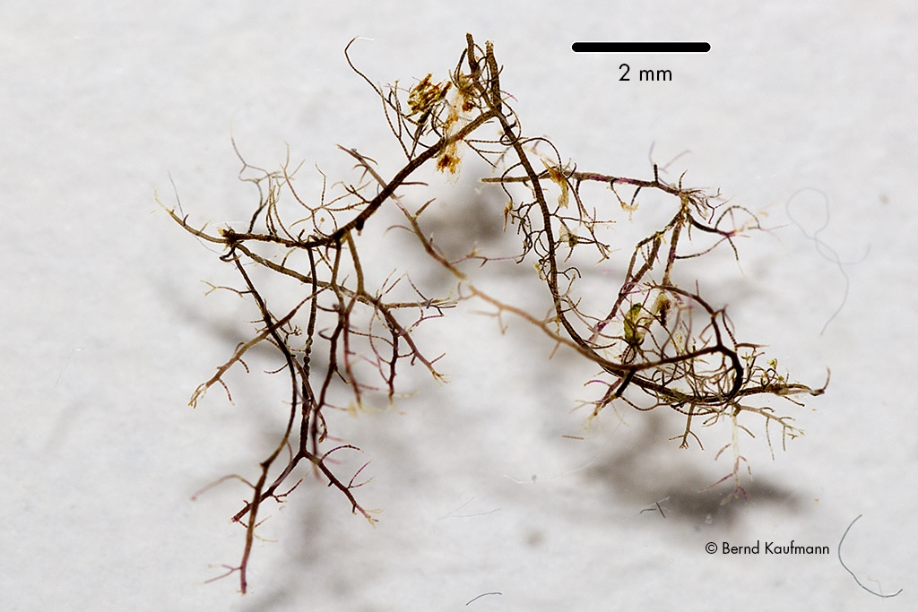 vermutlich kenne ich mitlerweile die "Aquarien-Rotalgen", einschließlich der in den letzten ca. 15 Jahren auftretenden, relativ unbekannten Arten, weil ich sehr viele Proben bekomme. Diese hier hat aber nur auf den allerersten Blick Ähnlichkeit mit den bekannten Arten. Bei der vorliegenden Alge gibt es zwei Besonderheiten: 1. Es ist wahrscheinlich, dass sie aus Indonesien stammt. 2. Bei dieser Wasseraufbereitung (Osmosewasser + Aufhärtung mittels Mineralsalzmischung) kommt zum Beispiel auch eine sonst nur marin oder im Brackwasser vorkommende Grünalge, der Darmtang Enteromorpha intestinalis, recht oft vor. Das hat mich auf die Idee gebracht, dass es doch eine Braunalge sein könnte. Leider finde ich darüber aber ausgesprochen wenig in meiner Literatur und im Internet.