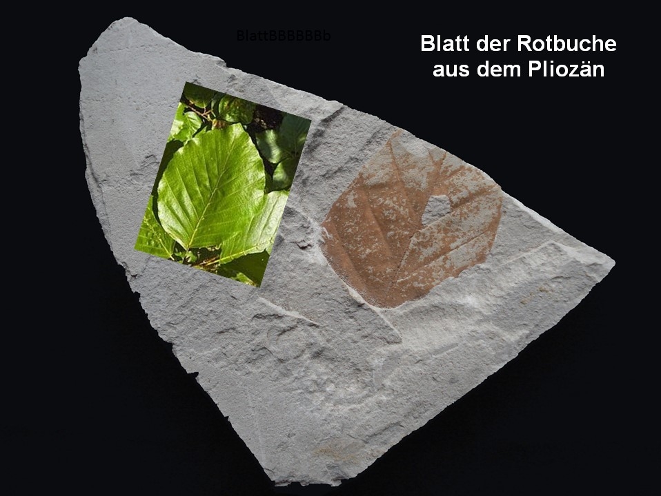 Bild 03 Blatt einer Rotbuche aus dem Fossilienzimmer Naturdenkmal Tongrube Willershausen am Harz (Pliozän).