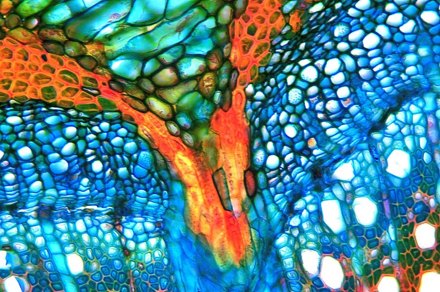sehr schön dein Bericht über die Rotbuche. Er hat mich angeregt in alten Bildersilos zu schauen nach einem Schnitt, den ich 2010 auf dem Wohldenbergtreffen gemacht hatte. In der Mittagspause habe ich im dortigen Buchenwald junge Sprösslinge gesehen, die z. T. noch die Buchecker als Häubchen auf hatten. Zweikeimblättrig, wie schön zu sehen. Die Keimblätter sehen ganz anders aus, wie die Buchenblätter. Ich habe nur ein Bild des ungefärbten Schnittes gefunden. Eigentlich muss ich ihn auch gefärbt haben. Dafür Dunkelfeld und man sieht schon, was man sehen muss. Ich hoffe es ist als Ergänzung willkommen.
