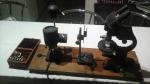 ...und mit Auflicht-Illuminator. Und überhaupt in einer Montage, die für Auflicht-Mikroskope in den 1920-40er Jahren üblich war (fest monitierte Beistellleuchte, Aperturblende, Mikroskop). Aber die Bilder sind lausig (das heißt: sehr schlecht)! Die weiße Tischfläche gehört überhaupt nicht in's Bild und sorgt nur dafür, dass alles, was zu sehen sein sollte, unterbelichtet ist.