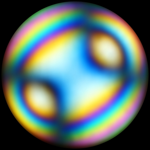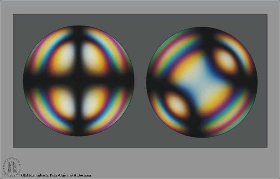 Die (010) ist immer und unter allen Umständen die Symmetrieebene. Ich sehe die Farbverteilung auch ganz deutlich, aber gebe auch zu, dass mein Auge diesbezüglich gut geschult ist. Bei dem Beispiel der geneigten Dispersion ist der Effekt allerdings so schwach, dass er in dem linken Bild in der Normalstellung nicht zu sehen ist, aber in der Diagonalstellung sehr wohl.