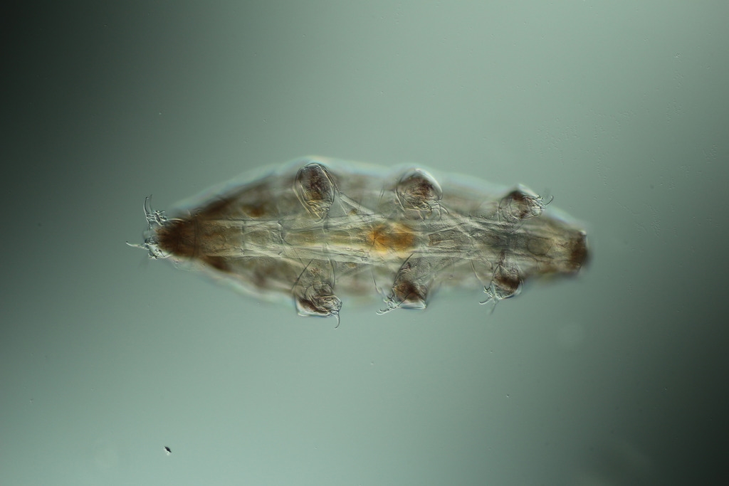 Zur Demonstration eine der Ursprungsdateien für meinen letzten Tardigraden-Beitrag (Plan Neofluar 20/0,50, Ofenrohr-Adaptation mit Canon EOS 100D, in Photoshop nur etwas Tonwertkorrektur). Ich glaube, das Bild ist, bezogen auf Deine Beobachtung, eindeutig ...