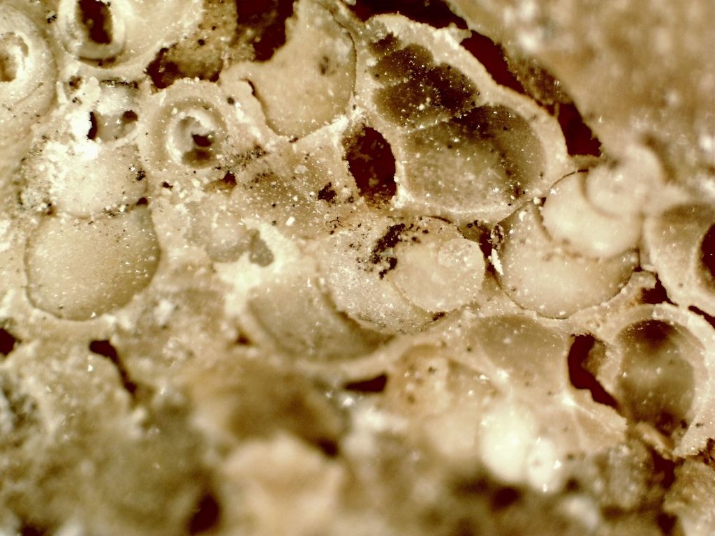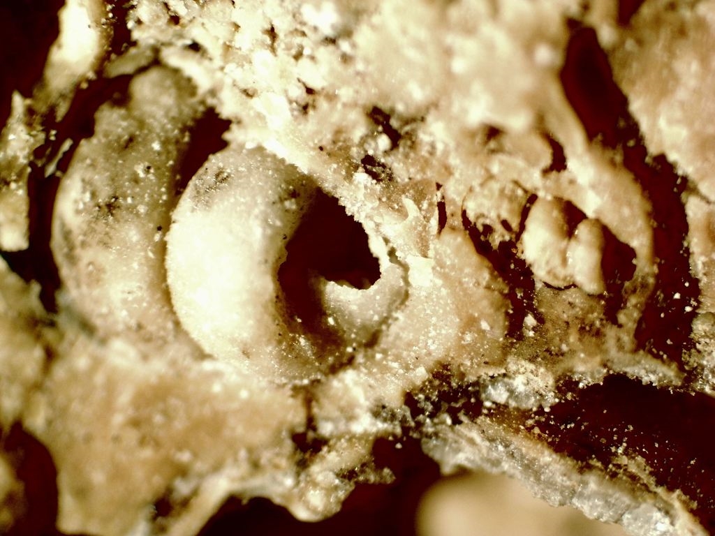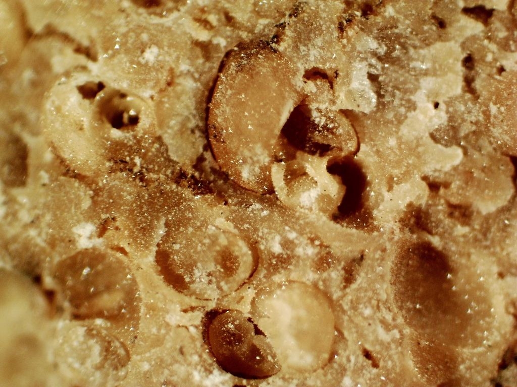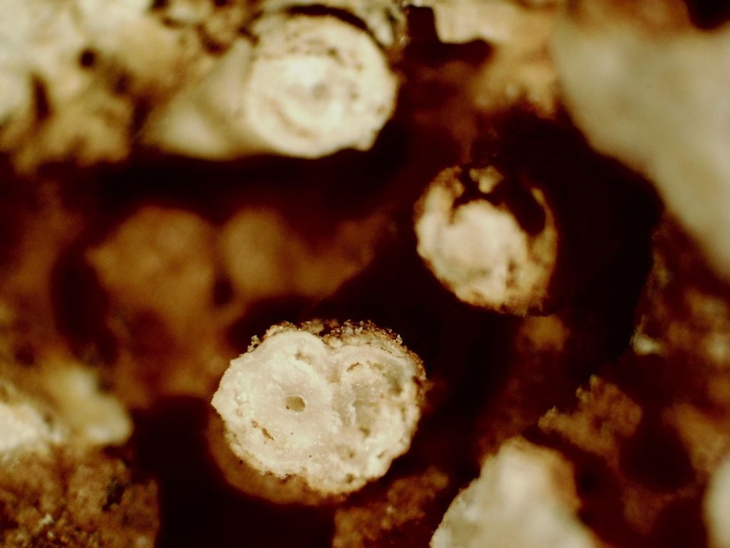 Hast Du eine Ahnung, was die winzigen, Röhrchen sind? (Außen rostfarben, innen wie "verkalkt") Das letzte Bild zeigt drei Bruchflächen (Durchmesser < 1/2 mm) dieser Röhrchen.