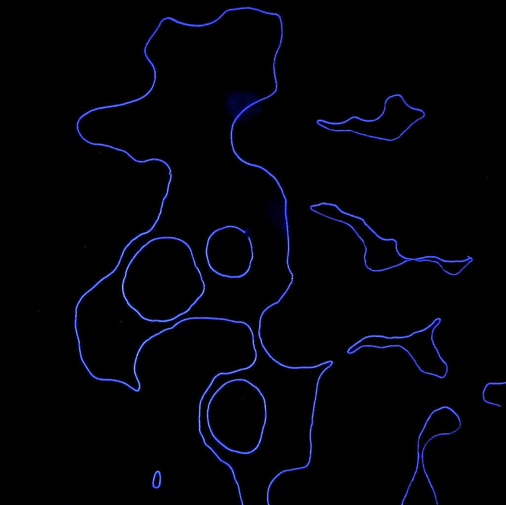 naja, es ist "Durchlicht - Dunkelfeld - Fluoreszenz" wie er selbst geschrieben hat. Wenn Dunkelfeld heller Ränder erzeugt, warum nicht auch bei der Kombination von Fluoreszenz mit Dunkelfeld ?
