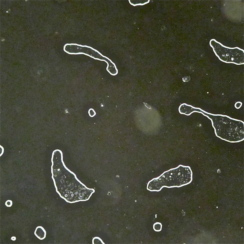Da jetzt von Klaus und Peter Zweifel an der Fluoreszenz geäußert wurden, habe ich das gestrige Präparat vorhin mit Dunkelfeld ohne Filter untersucht.
