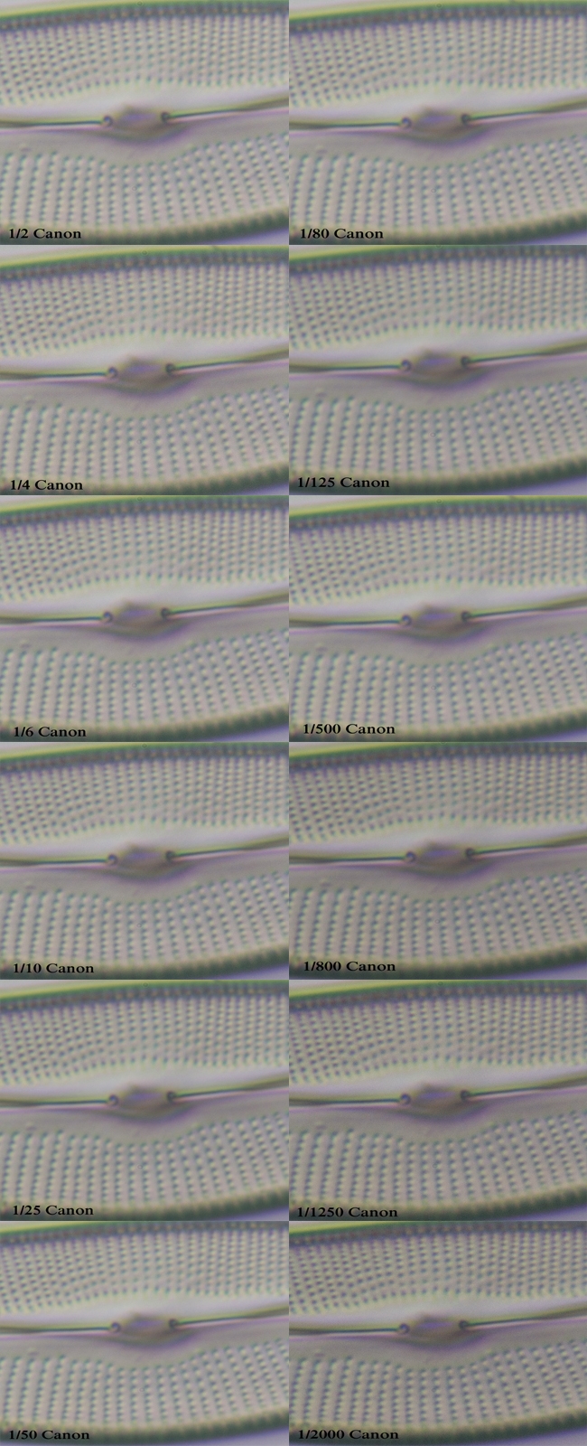 Erstaunlicherweise ist die 1/1250 Aufnahme gut, und die nächst kürzere (unten rechts) 1/2000 wieder schlechter....