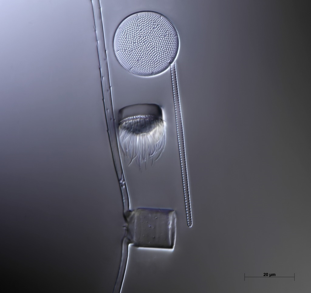 Stark vertreten sind auch Chaetoceros spec. mit bizzaren Dauersporen.