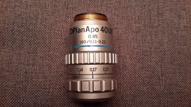 Ja, zum Glück steht die Einstellung auf 0,17mm. Man würde mit dem Korrekturring ein Präparat durch Drehen optimal scharf einstellen, Abmessen wäre nicht notwendig; Planapos sollen ja auf abweichende Deckglasdicken recht empfindlich reagieren, da habe ich allerdings keine eigene Erfahrung. Ich werde es einfach ausprobieren.