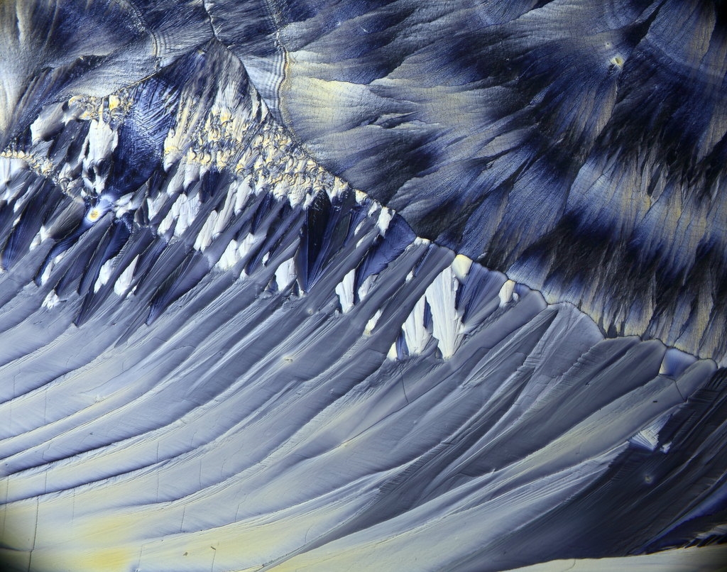 Es erinnert ein wenig an Liesegangsche Ringe. Diese  periodischen Strukturen entstehen bisweilen bei chemischen Reaktionen (z.B. Fällungsreaktionen) und können manchmal auch in geologischen Objekten (z.B. Achat) gefunden werden.