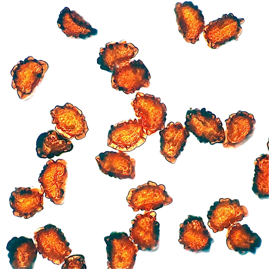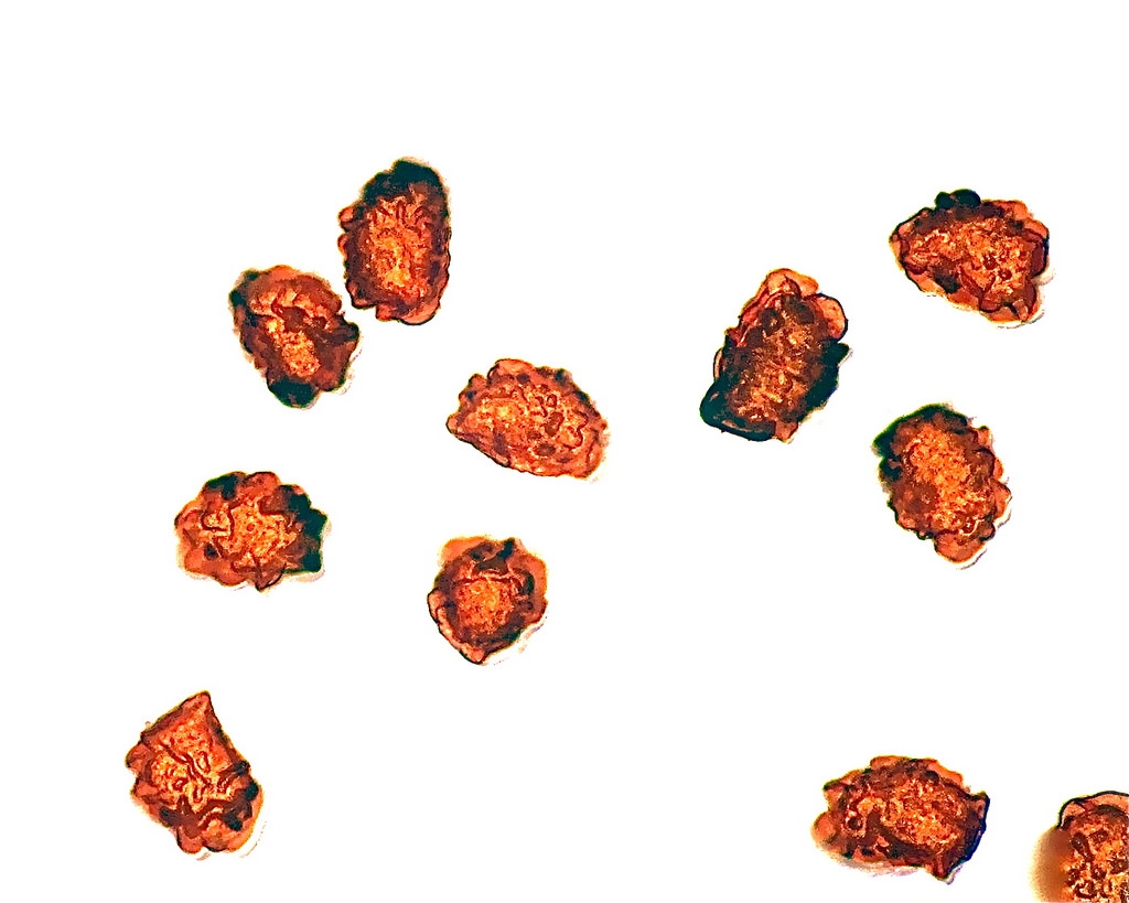 Die kleinste Sporenlänge betrug 37 µm und die größte 55 µm. Die meisten Sporen lagen im Bereich von 50 - 55 µm.