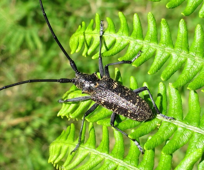 nachdem es ja nun wirklich geklärt ist bringe ich noch 2 Bilder einer ganz frischen Wanderung im Hochschwarzwald, da gibt es fast nur Heidelbeeren, Digitalis und natürlich in Massen den Adlerfarn. Der Unterschied zum Wurmfarn ist augenfällig. Den schönen Langhornbock  (Monochamus sartor) habe ich auch auf einem Blatt des Adlerfarns entdeckt siehe Bild im Naturaliste  http://www.lenaturaliste.net/forum/viewtopic.php?f=107&t=18556  Übrigens: Sori habe ich bei diesen vielen Adlerfarnen nie gesehen!