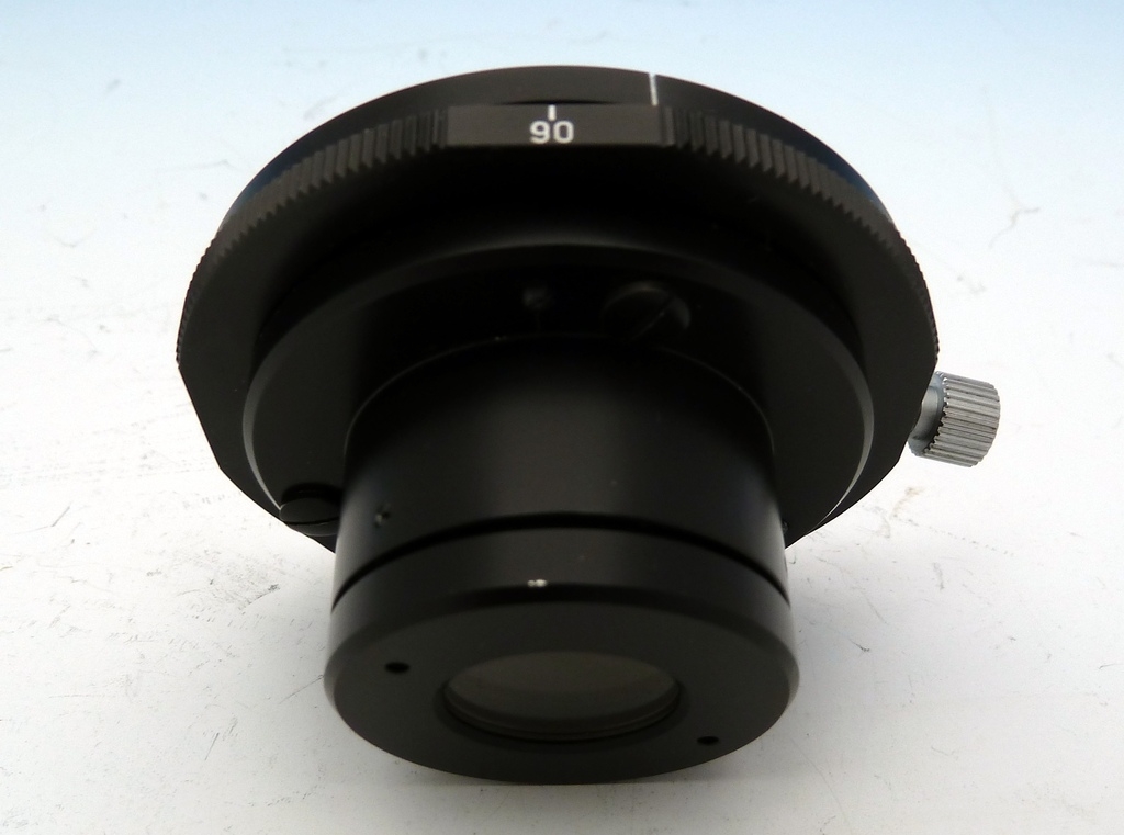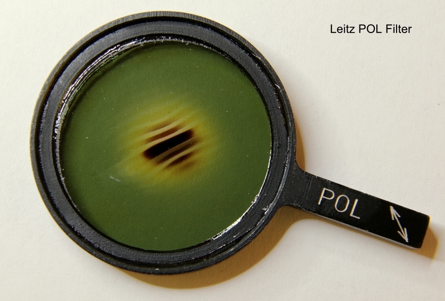 Offenbar gibt es verschiedene Versionen dieses Einsteck-Polarisatoren für das Orthoplan, zumindest habe ich zwei verschiededene. Ich vermute, dass die hier auf den Einzelbildern gezeigte  Version - im Gegensatz zu der Auf dem ersten Bild am Orthoplan - ebenfalls mit einem Vorpolarisator ausgestattet ist.