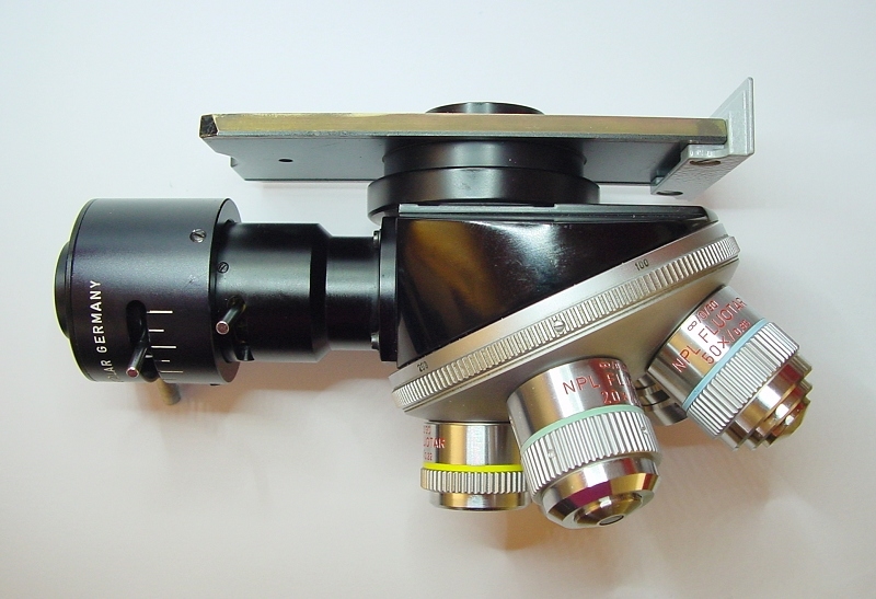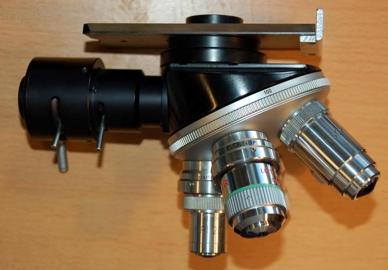 meines Wissens hat Ronald diesen AL-Illuminator mit Objektivrevolver. Den gibt es offenbar in verschiedenen Versionen. Am Orthoplan habe ich ihn wie auf dem Foto, dabei steckt der Polarisator als eigenständigen Teil hinten im Auflicht-Durchbruch des Orthoplan-Stativs.