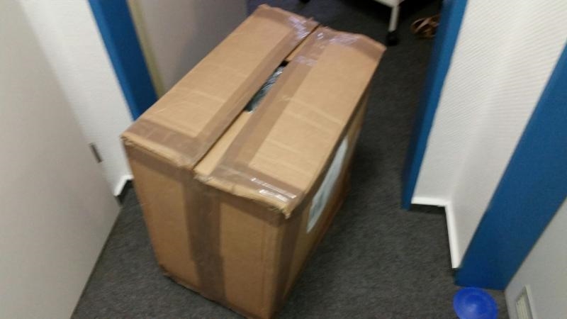 Fest steht: Da trägt DHL keine Schuld. Das ist ein eindeutiger Verpackungsfehler. Das merkt man schon, wenn man das völlig wabbelige Paket aus alter, schon weich gerwordener und zu dünner Pappe in die Hand nimmt und das schwere Mikroskop darin regelrecht "herumschwimmt". Und in der Tat immer schön aufs Lampenhaus gestellt wurde. Ich wusste schon vor dem Öffnen ziemlich genau, was mich erwartet. Auch am Tisch ist etwas verbogen und den Mechanismus der Tubusfixierung hat es auch erwischt, der Tubus bleibt nun wohl auf ewig untrennbar mit dem Stativ verbunden.