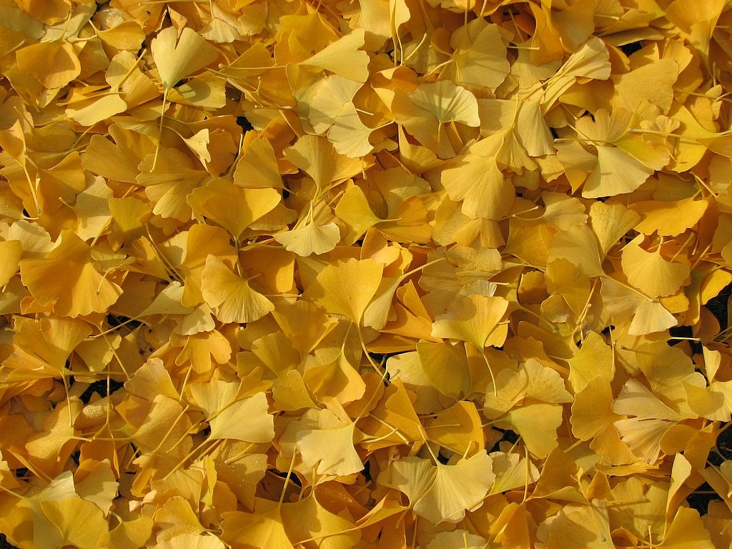 Bild 6: die abgefallenen Ginkgoblätter bedecken im Herbst den gesamten Boden unter dem Baum