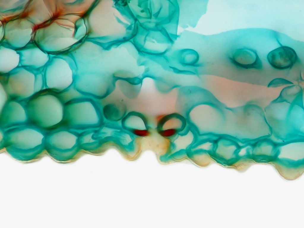 Blatt und Blattstiel kamen in Möhreneinbettung unters Messer, auch hier mit einer Schnittdicke von ca. 60 µm.
