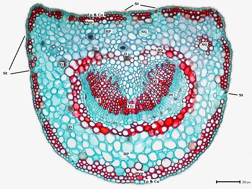 Wir erkennen den gleichen Aufbau wie beim Blattstiel, nur die Hypodermis fehlt.