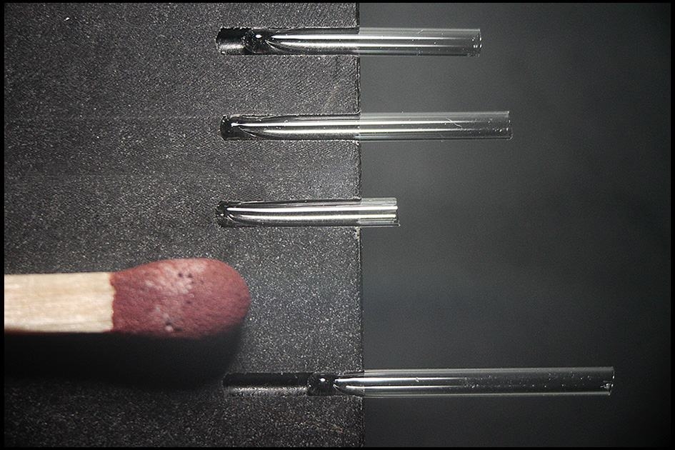 Ich hoffe, Du mußtest nicht niesen. ;) Faszinierende Dokumentation. Ich finde klasse, daß Du die Behälter einfach aus Glasröhrchen erschmolzen hast. :) Gefällt mir.