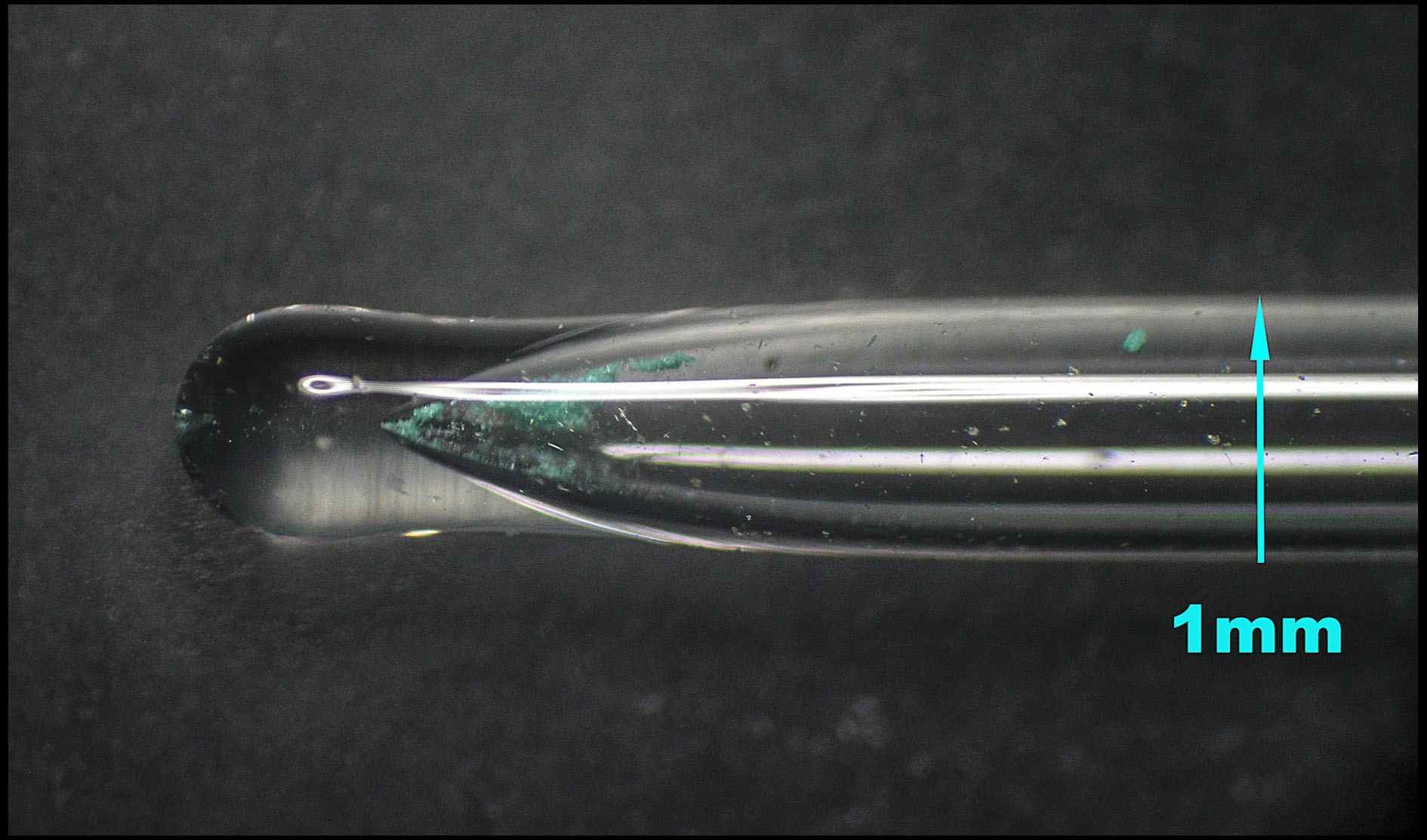 Da ich (bisher) keine Möglichkeiten habe, die enormen Kapillarkräfte (chemisch) zu bändigen, bin ich gezwungen, nach Einbringen der Flüssigkeiten in den Randbereich der Kapillare,