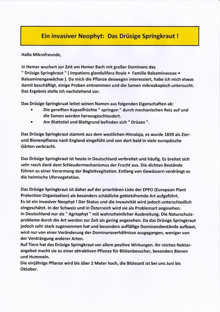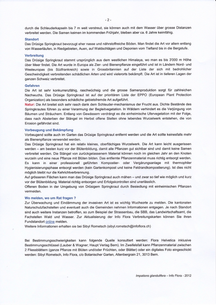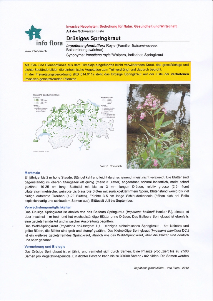 habe. Daher will ich jetzt noch eine weitere ergiebige Quelle zu dem Drüsigen Springkraut angeben: Die " Schweizer info flora ". Nachstehend ein