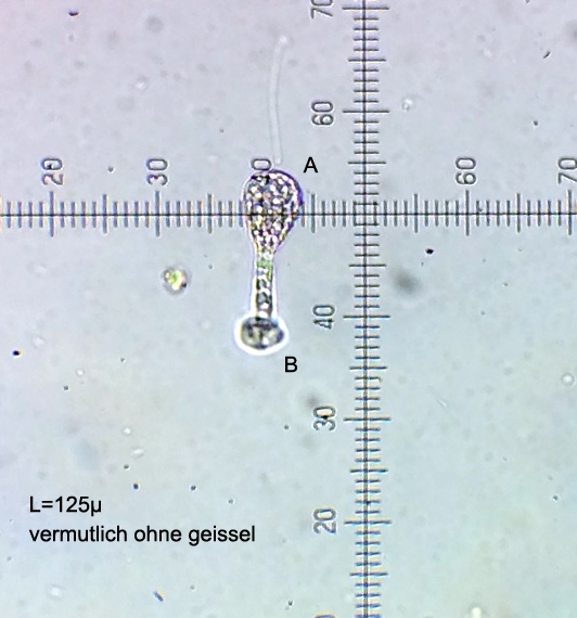 länge vom tier ca.125µ, es hatte keine sichtbaren wimpern und der obere strich ist vermutlich keine geissel (schmutz oder bakterium).