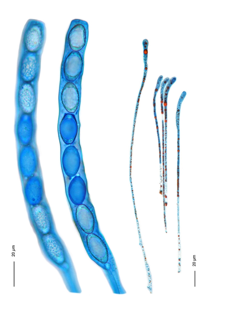 ja, gerade die Ascomyceten zeigen oftmals sehr eindrückliche Strukturen und zusammen mit Baumwollblau faszinierende Farbkombinationen. Kannst du etwas zu den orangen Tropfen in den Paraphysen sagen? Sind dies reine Farbstoffeinlagerungen und/oder als Oeltropfen auch Vorratsstoffe?