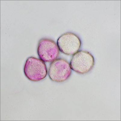 die Farbe ist tatsächlich recht ,,giftig". Und ja, das dürften Pollen sein. Mit dem 40er und etwas Fuchsin lösen die Strukturen dann besser auf:
