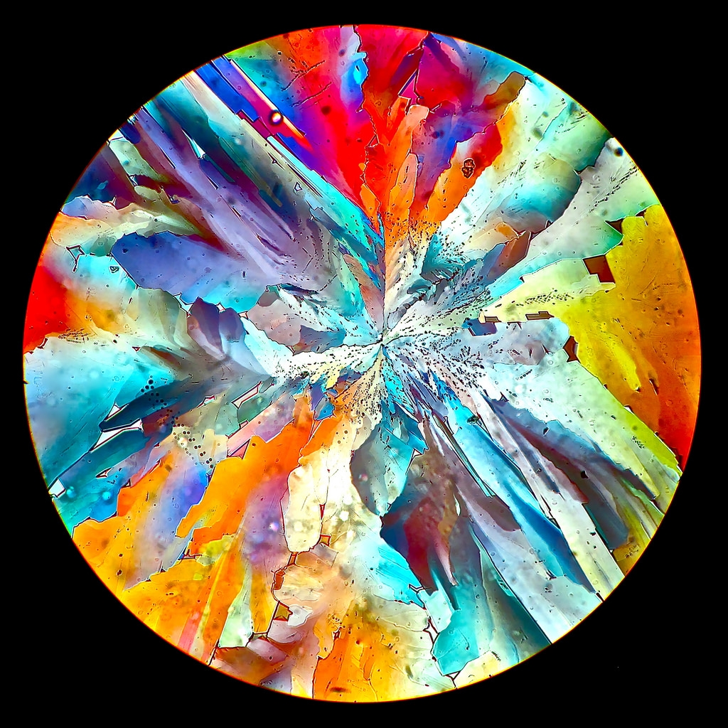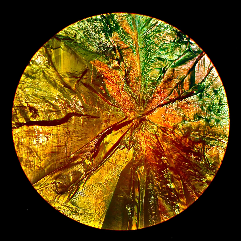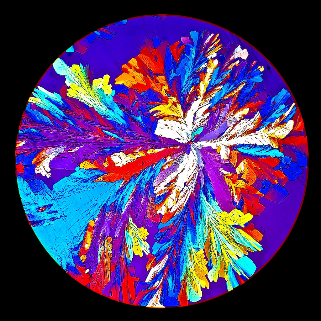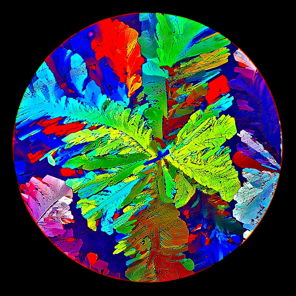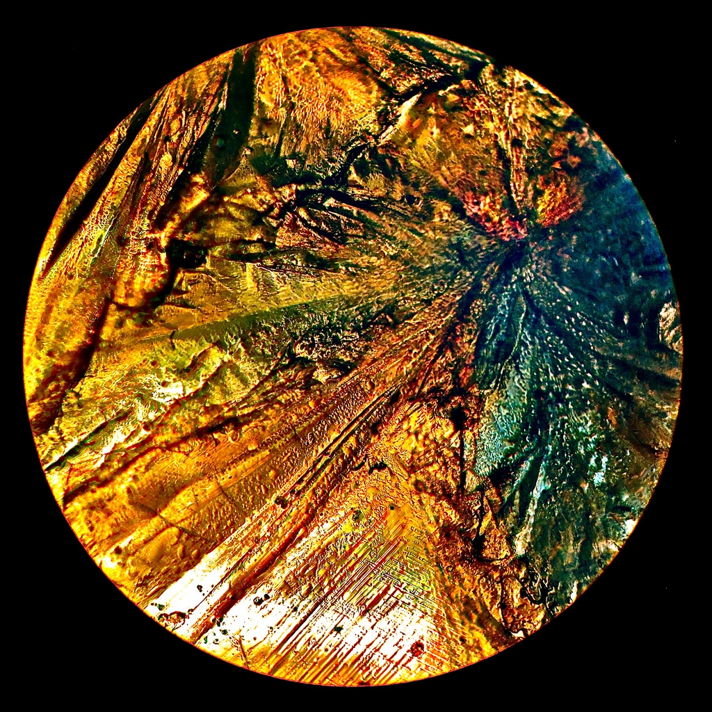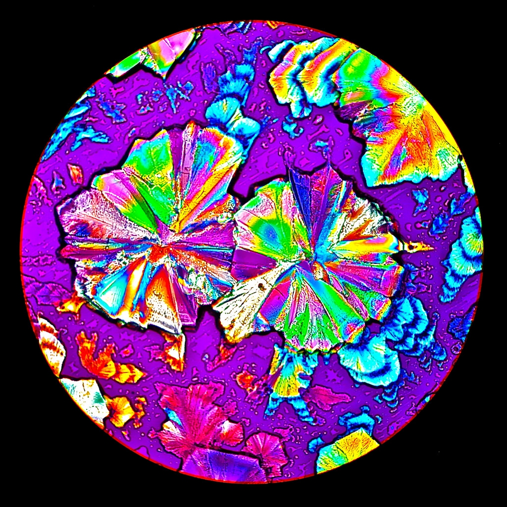 Ich habe heute nach längerer Standzeit das Verdunstungspräparat erneut mikroskopiert. Die Kristallformen haben sich auch hier, wie beim Schmelzpräparat, weiter verändert, sie sind flächiger geworden. Nachstehend zeige ich 6 Bilder davon mit Spiegelreflexmikroskopie.