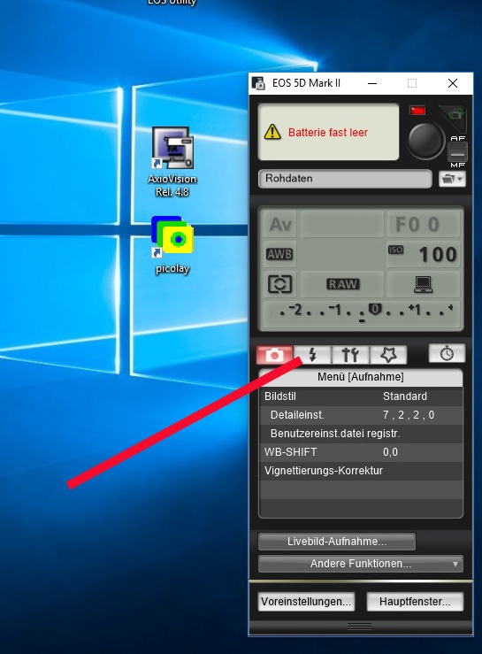 In der Tat ist meine etwa 10 Jahre alte Utility-Version 2.6.0.0 doch zu betagt und zeigt auch nachdem ich "Remote Live View-Aufnahme" aufgerufen habe keinen Knopf mit dem ich die Blitzfernsteuerung aufrufen könnte.