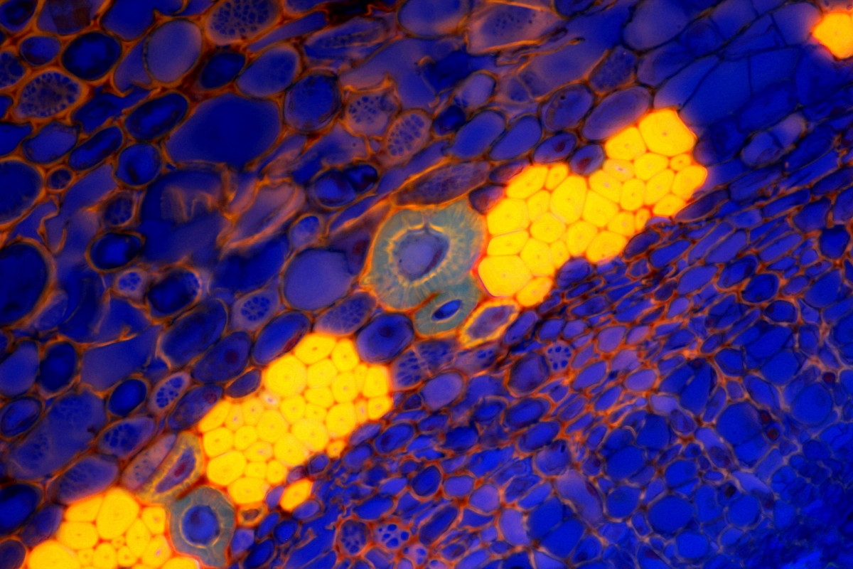 noch ein Versuch das zu zeigen, worauf es mir eigentlich ankam, das UV-Fluoreszenzbild mit Sklerenchym und Steinzellen: