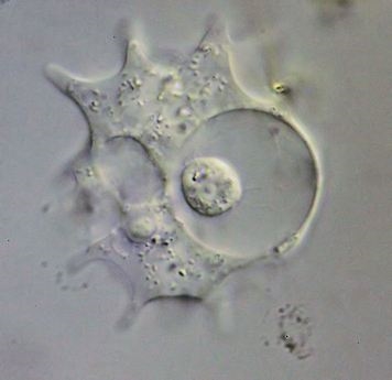 Gerne würde ich das Filmchen mal vorführen, aber zum Einstellen im PBucket ist es bei unserem Dorf-Internet einfach zu lang. Das folgende Bildchen stammt aus einer "Verfolgung" einer Amöbe, die was gefressen hat.