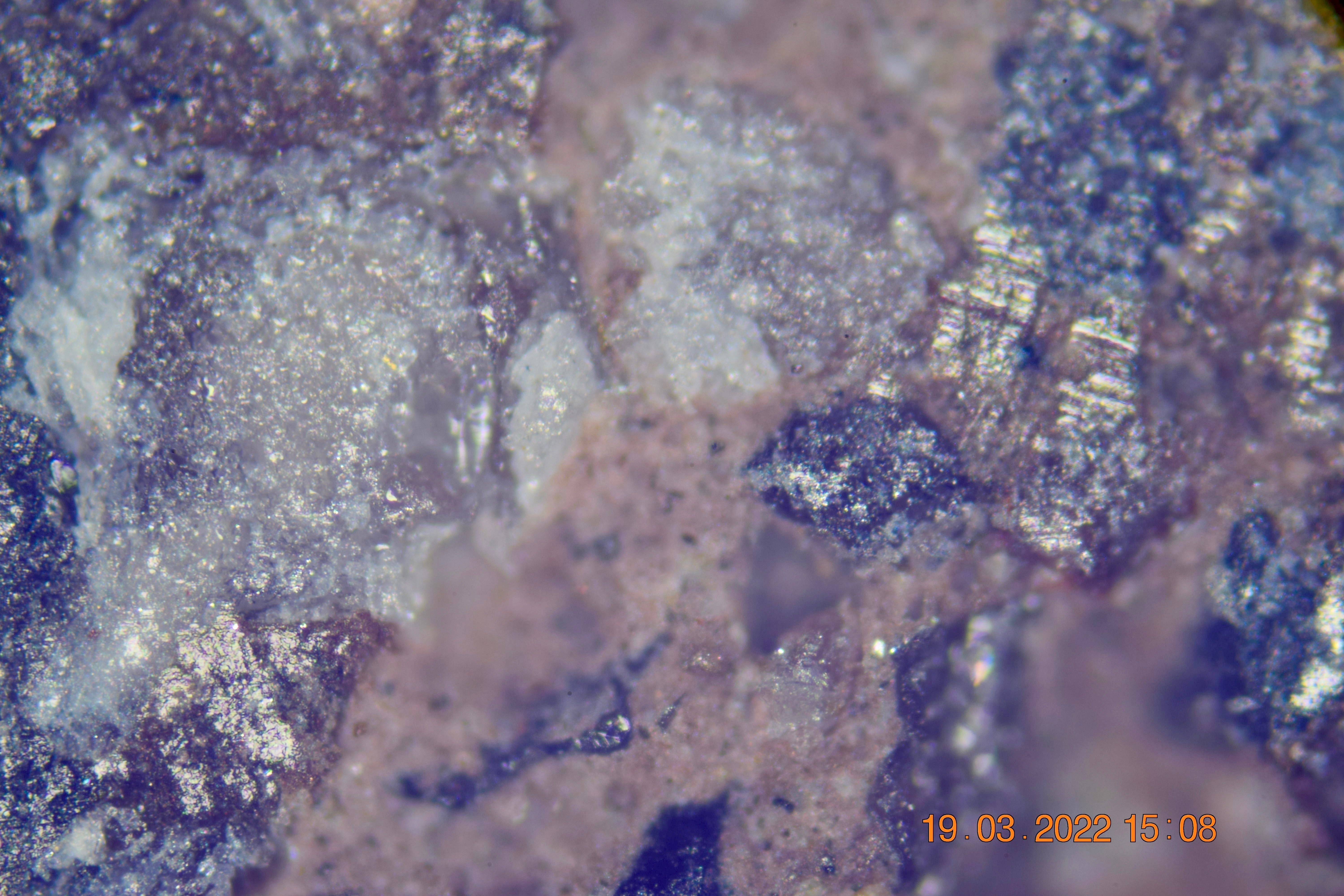 a) Hier die Körnchen mit maximalen Durchmessern von etwa 2....3 Millimeter (Nikon Mikro 40/2,8):